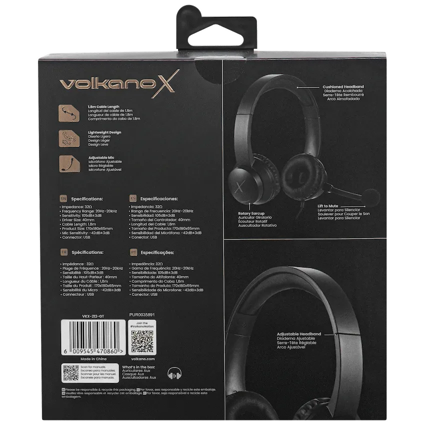 VolkanoX Chat Mk2 Series Wired USB Headset - Graphite