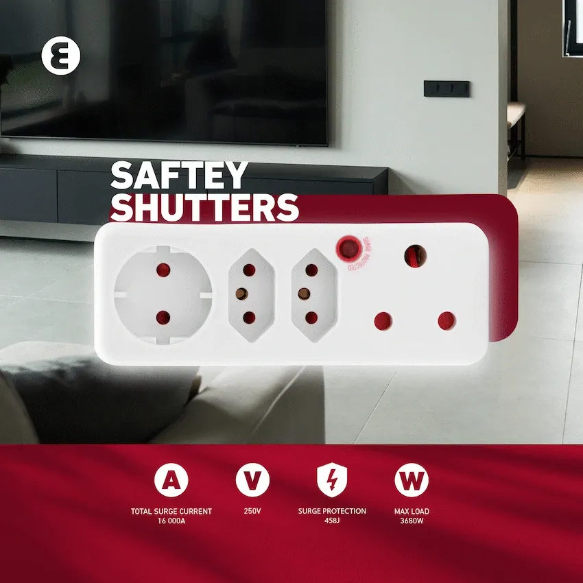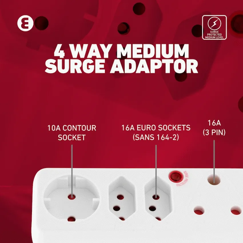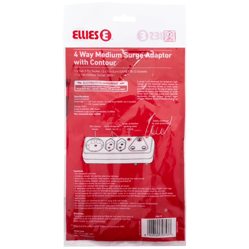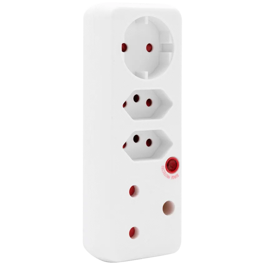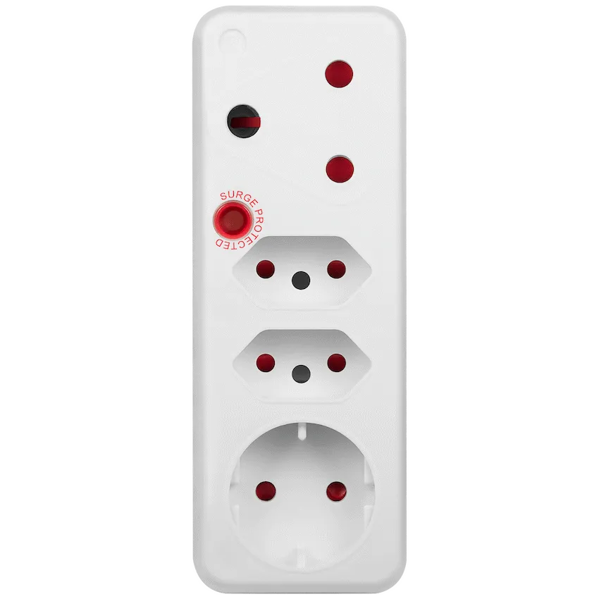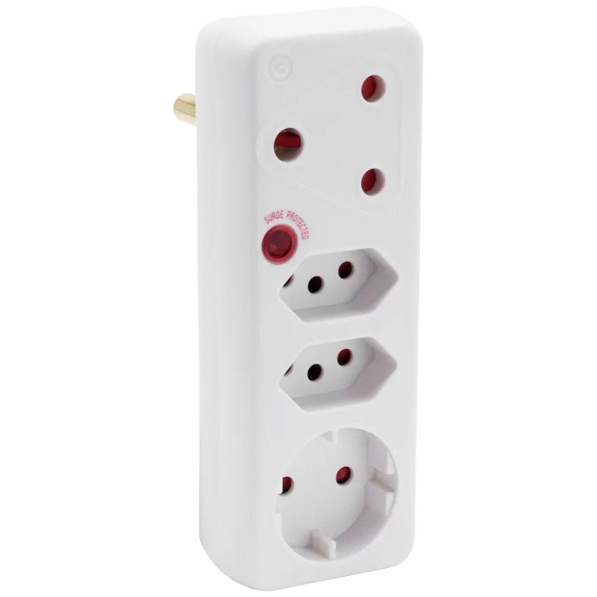 Ellies 4-Way Medium Surge Adaptor with Schuko - White