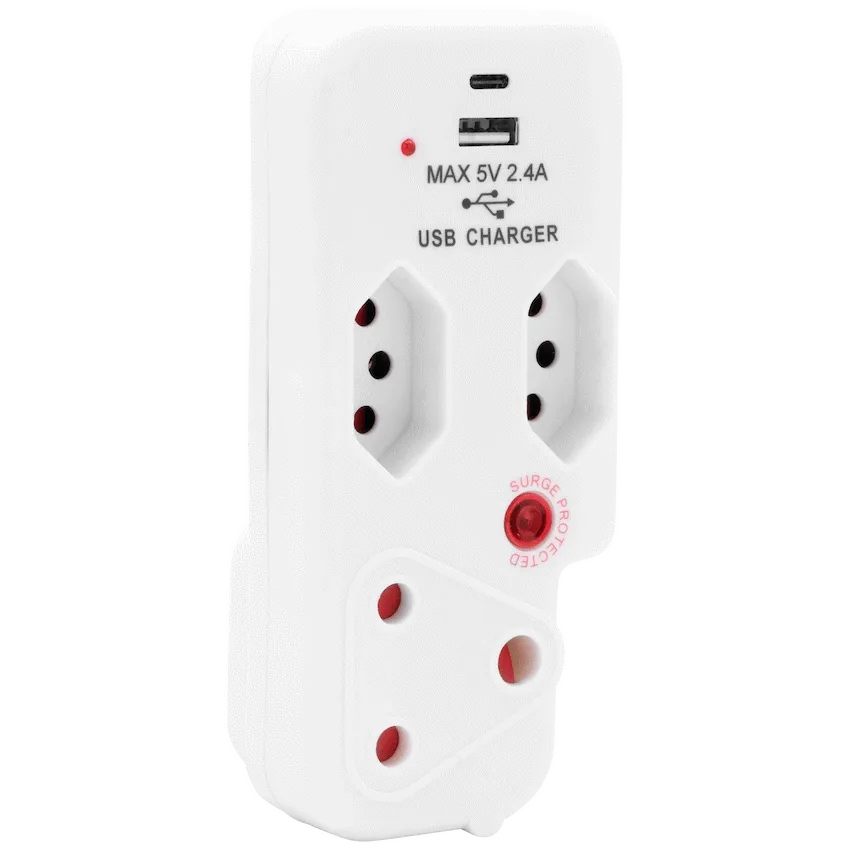 Ellies 3 Way Medium Surge adaptor with type C + USB - White