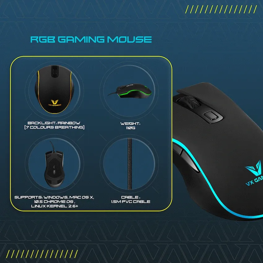 VX Gaming Hypnos Series Gaming Mouse with Rainbow Lighting